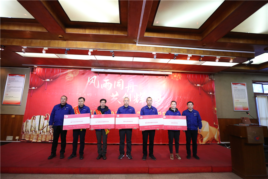 會上,公司副總經(jīng)理鄒凡丁宣讀了《2020年度先進集體及先進個人表彰通報》。2020年,在公司董事會的正確領(lǐng)導(dǎo)下,公司經(jīng)營班子團結(jié)帶領(lǐng)全體員工,緊緊圍繞2020年職代會確定的方針目標(biāo)和具體措施,以“建隊伍、謀市場、降成本、提質(zhì)量”四大重點工作為抓手,加快推進公司治理和轉(zhuǎn)型升級,攻堅克難,逆勢而上,取得了國內(nèi)同行業(yè)領(lǐng)先的經(jīng)營業(yè)績。為表彰2020年在各條戰(zhàn)線上涌現(xiàn)出來的先進集體和先進個人,經(jīng)公司綜合評定,共評選出先進車間4個、先進部門4個、先進分工會3個、先進班組9個、生產(chǎn)標(biāo)兵17人、“建隊伍”標(biāo)兵7人、“謀市場”標(biāo)兵10人、“降成本”標(biāo)兵6人、“提質(zhì)量”標(biāo)兵6人、公司級優(yōu)秀項目5個。