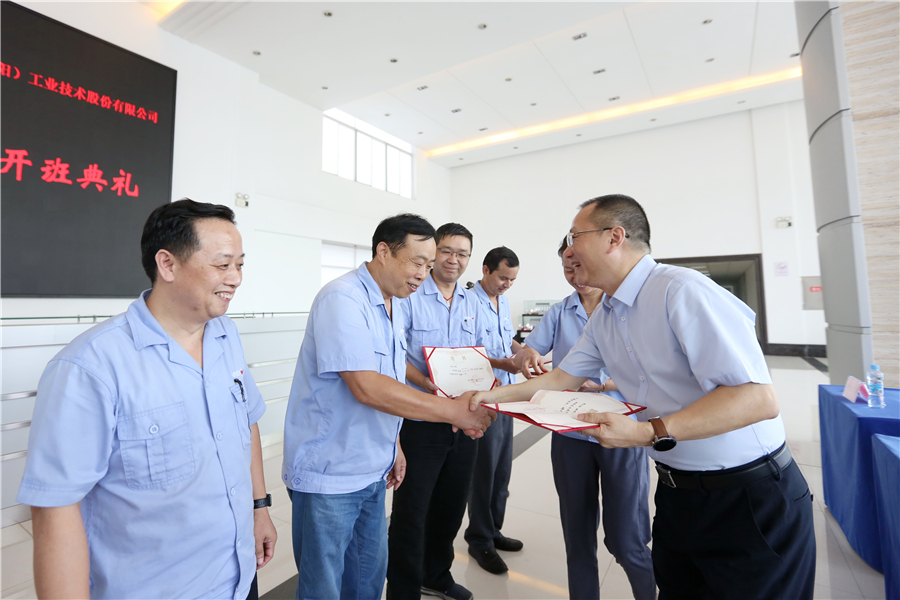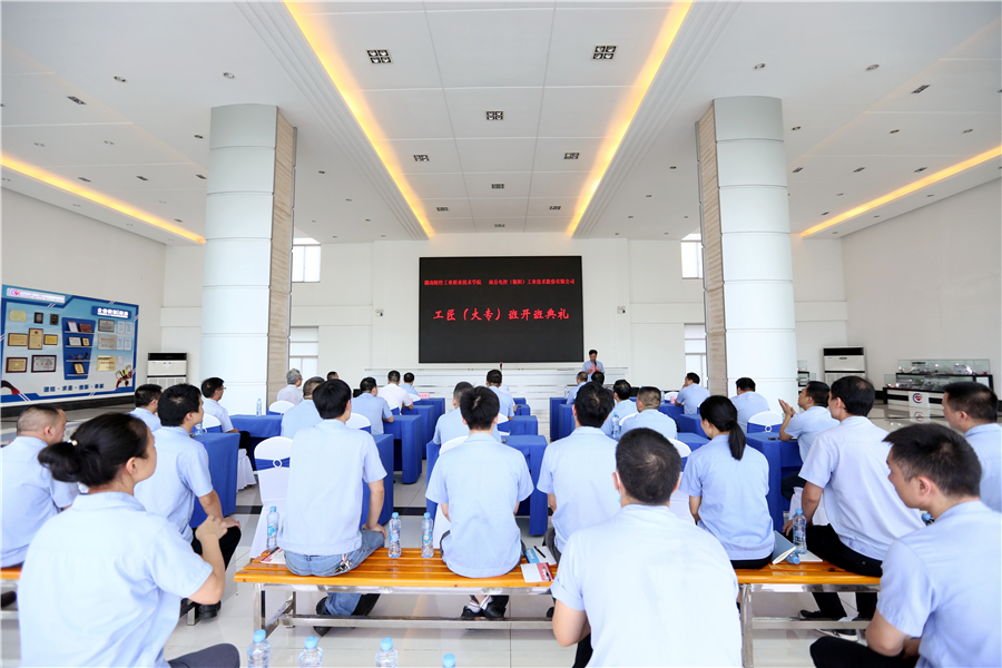 9月17日下午,公司與湖南財(cái)經(jīng)工業(yè)職業(yè)技術(shù)學(xué)院(以下簡(jiǎn)稱“湖南財(cái)工院”)聯(lián)合舉辦的“工匠(大專)班”培訓(xùn)班開班儀式,在新廠區(qū)辦公樓一樓大廳隆重舉行。公司黨委書記、董事長(zhǎng)龍美彪,黨委副書記、總經(jīng)理譚新民,湖南財(cái)工院院長(zhǎng)戴旻、副院長(zhǎng)胡智清等出席開班儀式,公司部分車間主任、財(cái)工院聘任的公司兼職老師及全體學(xué)員等共40余人參加開班儀式。