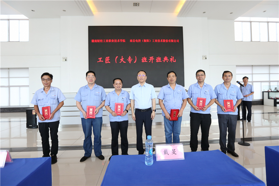 開班儀式由公司副總經(jīng)理鄒凡丁主持。首先,湖南財(cái)工院院長(zhǎng)戴旻為聘任的公司兼職老師胡文祥、凌剛、周劍光、鄒友軍、陳美勇及工匠(大專)班班主任段曲頒發(fā)聘書。之后,他發(fā)表了熱情洋溢的講話,他表示,湖南財(cái)工院建校歷史悠久,師資力量雄厚,學(xué)校環(huán)境優(yōu)美,是衡陽高職院校中的佼佼者;近年來,學(xué)校向南岳電控輸送了幾十名思想穩(wěn)定、技術(shù)過硬、吃苦耐勞、表現(xiàn)優(yōu)秀的畢業(yè)生,他們已成為校企合作的友誼使者與成功典范;他們是“雁行天下、自強(qiáng)不息”的學(xué)院精神弘揚(yáng)者,也是“厚德、強(qiáng)技、弘毅、篤行”校訓(xùn)的倡導(dǎo)者,更是“守正出新、學(xué)以致用”校風(fēng)的踐行者;他希望今后一如既往加強(qiáng)與南岳電控的深度合作,實(shí)現(xiàn)校企雙方互利共贏。