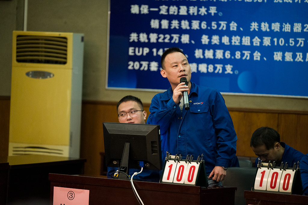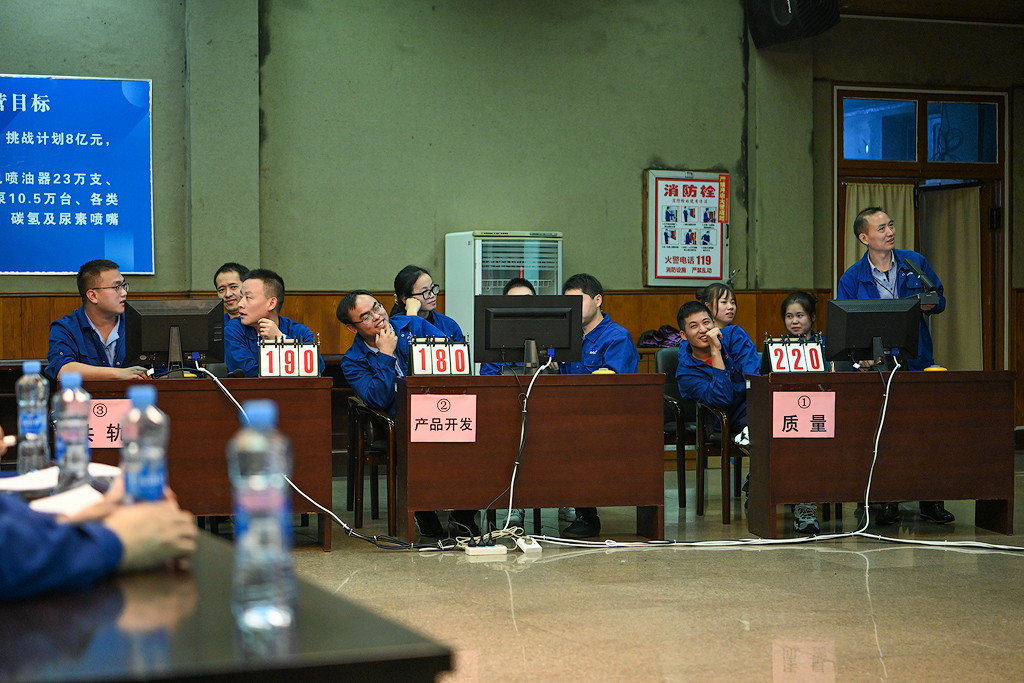 大賽由公司副總經(jīng)理李運(yùn)升擔(dān)任裁判長(zhǎng),總師辦主任伍立英、內(nèi)控審計(jì)部部長(zhǎng)賀志勇、質(zhì)量控制部劉月林擔(dān)任裁判。比賽分預(yù)賽和決賽兩個(gè)階段進(jìn)行。預(yù)賽共3場(chǎng),16支代表隊(duì)抽簽決定上場(chǎng)順序,每場(chǎng)預(yù)賽前2名出線直接進(jìn)入決賽;決賽1場(chǎng),由6支參賽隊(duì)比拼并決出一、二、三名。競(jìng)賽題型包含必答題、搶答題和風(fēng)險(xiǎn)題三個(gè)環(huán)節(jié)。在10月12日、13日晚的預(yù)賽中,16支參賽隊(duì)嚴(yán)謹(jǐn)審題、認(rèn)真作答,賽出了風(fēng)格,賽出了水平,充分展示了扎實(shí)的質(zhì)量管理流程基礎(chǔ)知識(shí)功底和融洽的團(tuán)隊(duì)協(xié)作精神,比賽緊張激烈,比分交替上升,贏得了觀眾和評(píng)委熱烈的掌聲。經(jīng)過(guò)3場(chǎng)預(yù)賽的激烈比拼,產(chǎn)品開(kāi)發(fā)部、共軌車(chē)間、熱處理車(chē)間、總裝車(chē)間、機(jī)關(guān)一支部、質(zhì)量控制部6支代表隊(duì)脫穎而出殺入決賽。