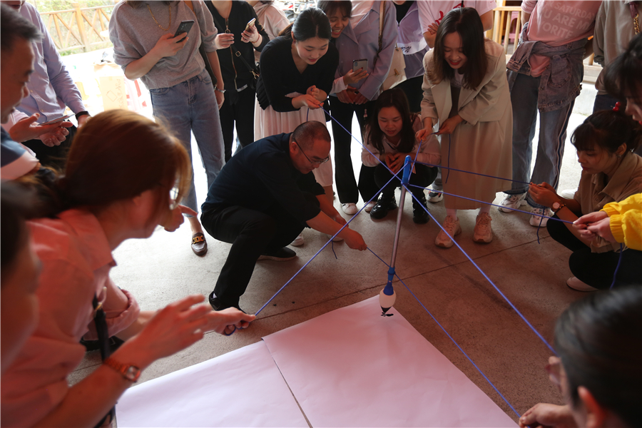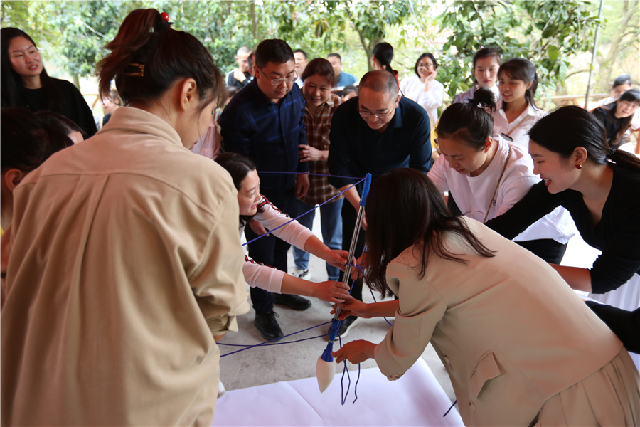 表彰活動(dòng)結(jié)束后,活潑歡快,燃爆激情的趣味游藝活動(dòng)正式開(kāi)始。在“快樂(lè)傳真”游藝活動(dòng)中,“拓市場(chǎng)”、“全員質(zhì)量”、“共軌”、“IPO” 等一個(gè)個(gè)公司職代會(huì)熱詞,被參與者用生動(dòng)幽默的肢體語(yǔ)言演繹出來(lái),既傳遞了歡樂(lè)元素,又使公司生產(chǎn)經(jīng)營(yíng)中心工作入腦入心?!皧A紙接力傳書(shū)”游藝環(huán)節(jié),需要大家克服困難、協(xié)同配合,快速高效完成任務(wù)?!耙蝗Φ降住眲t是考驗(yàn)參與者在活動(dòng)中能否積極參與、互幫互助?!肮矊?xiě)華章”游藝節(jié)目,由八人合作共寫(xiě)“通力合作,共創(chuàng)大業(yè)”八個(gè)大字,需要參與者齊心協(xié)力、步調(diào)一致,意為共同譜寫(xiě)南岳電控圖強(qiáng)復(fù)興新篇章。