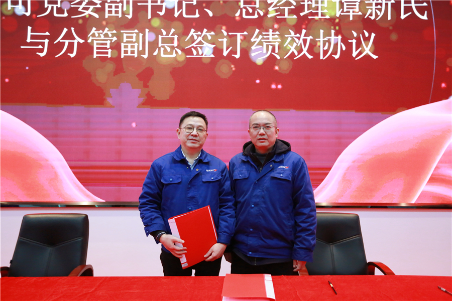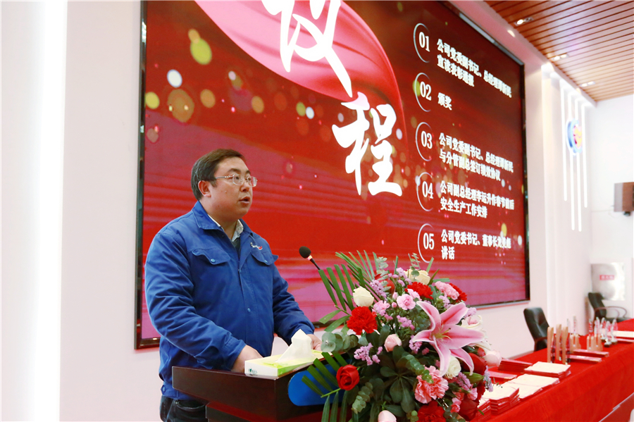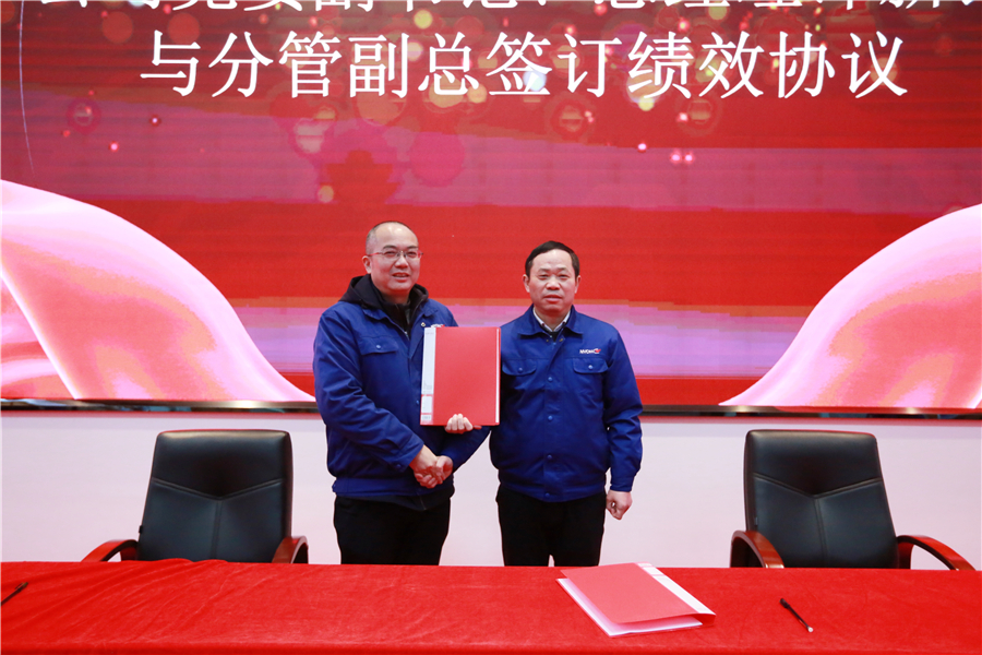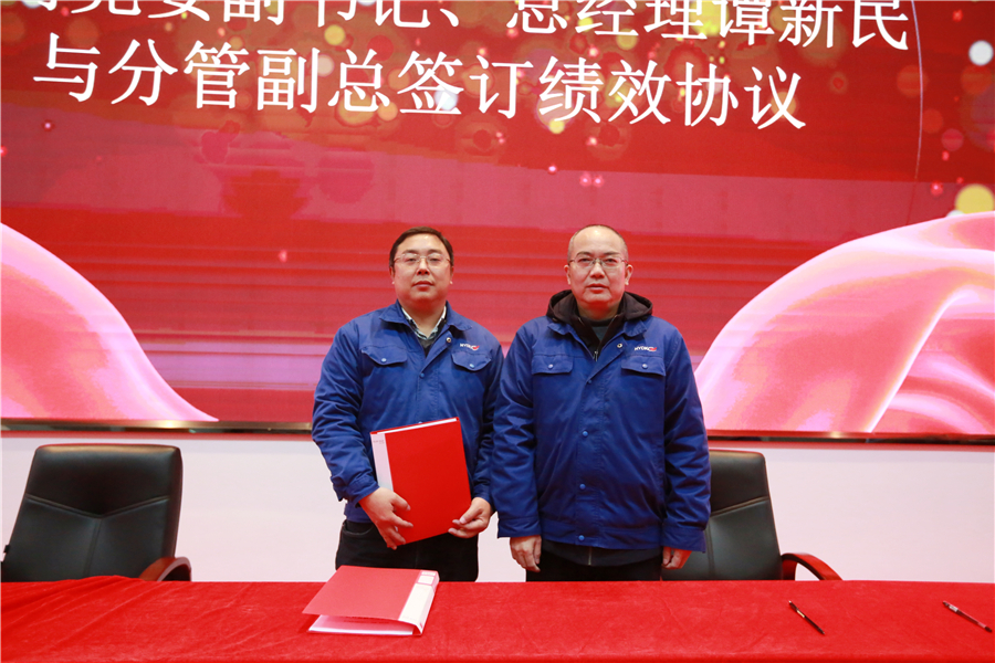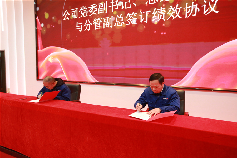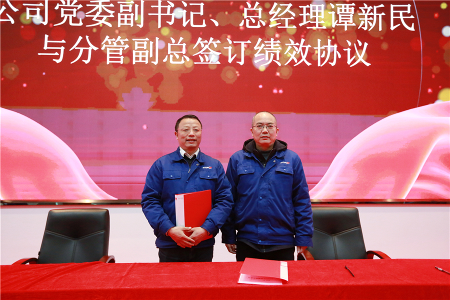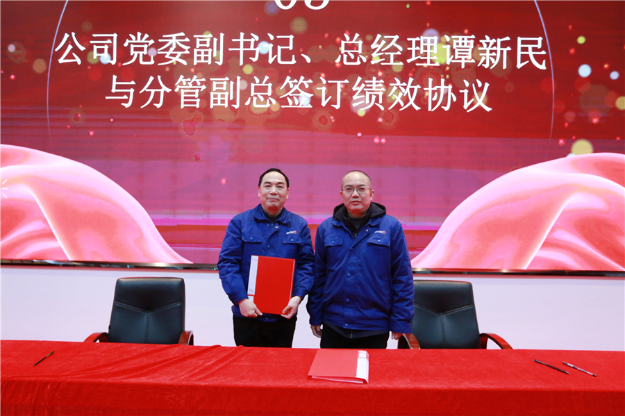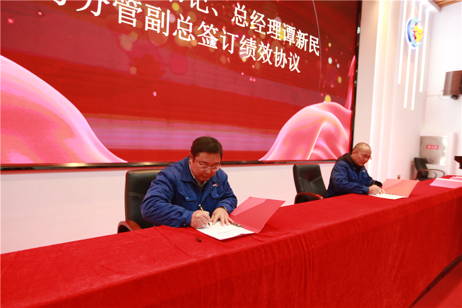 頒獎(jiǎng)結(jié)束后,公司黨委書(shū)記、董事長(zhǎng)龍美彪與黨委副書(shū)記、總經(jīng)理譚新民簽訂了2023年度績(jī)效協(xié)議,譚新民與各分管副總簽訂了2023年度績(jī)效協(xié)議;公司副總經(jīng)理李運(yùn)升對(duì)春節(jié)前后的安全生產(chǎn)工作做了部署和安排。