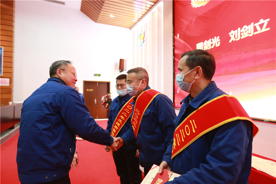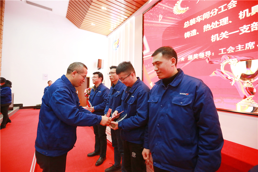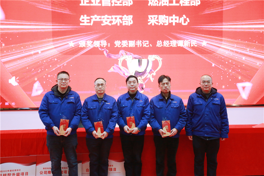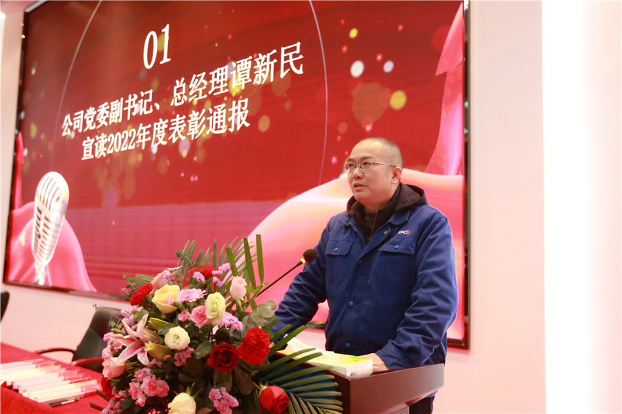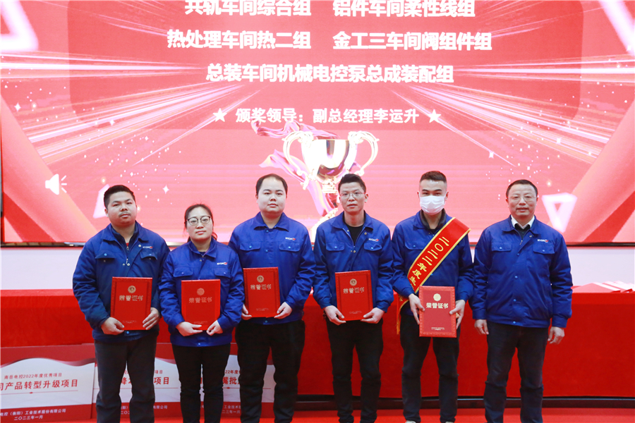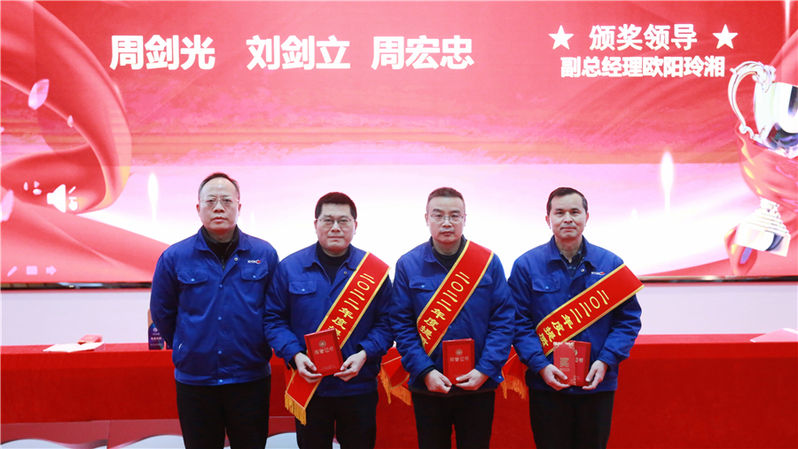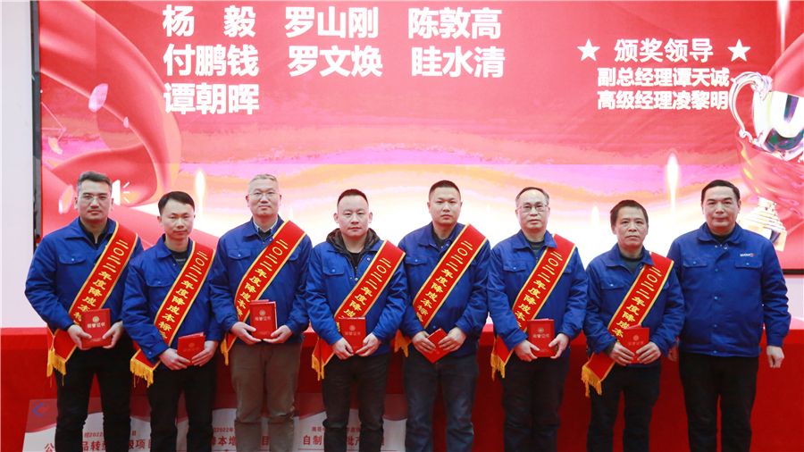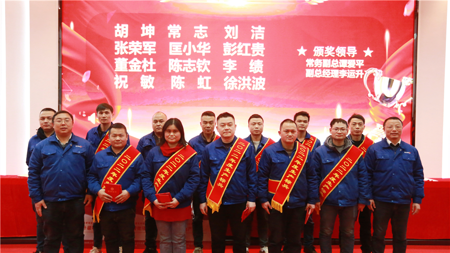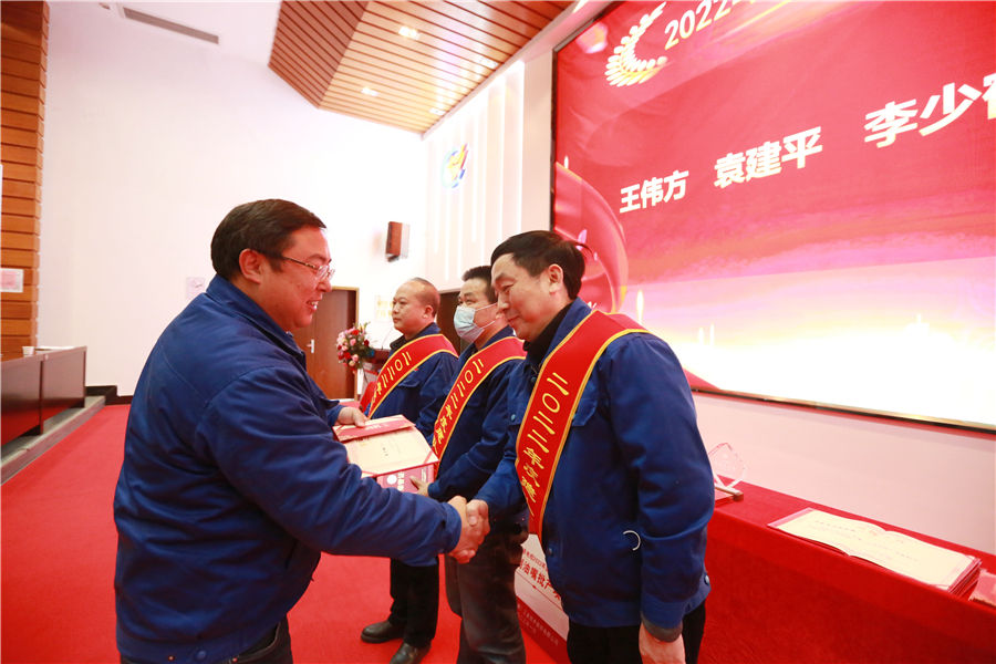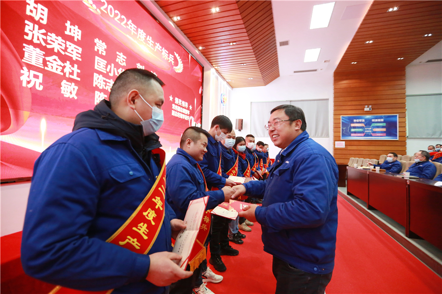 成績(jī)來(lái)之不易,它凝聚著全體員工的心血、智慧和汗水,凝聚著全體員工凝心聚力的必勝信念和敢打硬仗的拼搏精神。為表彰2022年在各條戰(zhàn)線上涌現(xiàn)出來(lái)的先進(jìn)集體和先進(jìn)個(gè)人,經(jīng)公司勞動(dòng)競(jìng)賽委員會(huì)綜合評(píng)定,共評(píng)選出先進(jìn)車(chē)間3個(gè)、先進(jìn)部門(mén)4個(gè)、先進(jìn)分工會(huì)4個(gè)、先進(jìn)班組5個(gè)、生產(chǎn)標(biāo)兵12人、“建隊(duì)伍”標(biāo)兵3人、“謀市場(chǎng)”標(biāo)兵10人、“降成本”標(biāo)兵7人、“提質(zhì)量”標(biāo)兵3人,公司級(jí)優(yōu)秀項(xiàng)目3個(gè)。會(huì)上,公司黨委書(shū)記、董事長(zhǎng)龍美彪,黨委副書(shū)記、總經(jīng)理譚新民等公司領(lǐng)導(dǎo),分別為2022年度先進(jìn)集體、先進(jìn)個(gè)人頒獎(jiǎng)。