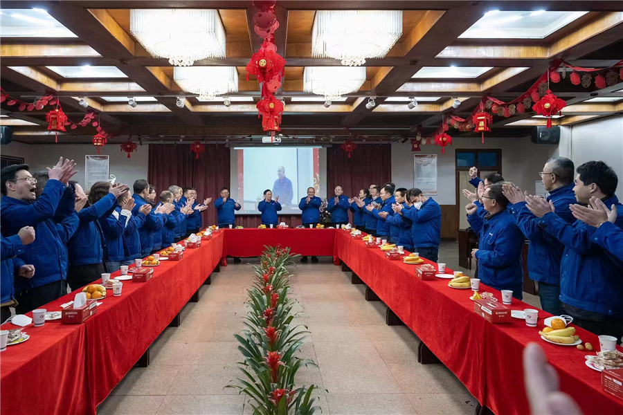 瑞虎報(bào)捷辭舊歲,玉兔踏春迎新年。2023年1月22日(正月初一)上午,公司在科技大樓大會(huì)議室舉行2023年新春團(tuán)拜會(huì)。公司黨委書記、董事長(zhǎng)龍美彪致辭,黨委副書記、總經(jīng)理譚新民帶領(lǐng)全體人員宣誓奪取新年新業(yè)績(jī),公司全體高層領(lǐng)導(dǎo)及中層正職領(lǐng)導(dǎo)干部參加團(tuán)拜活動(dòng)。