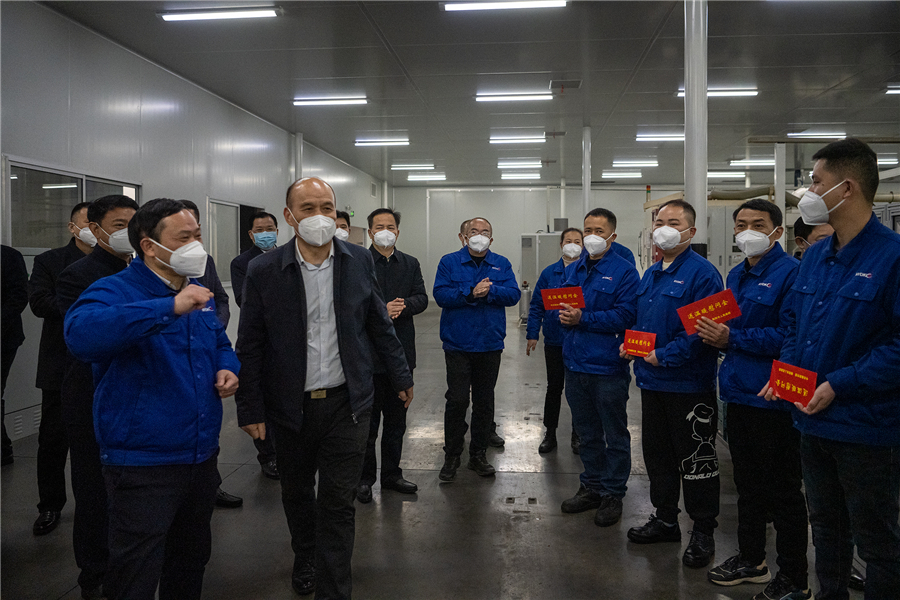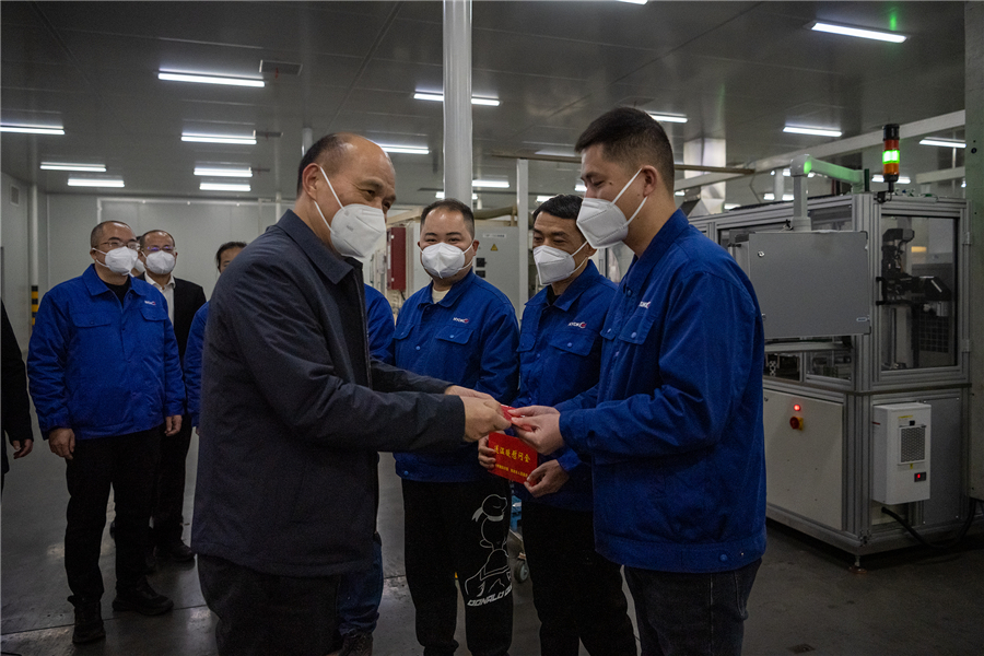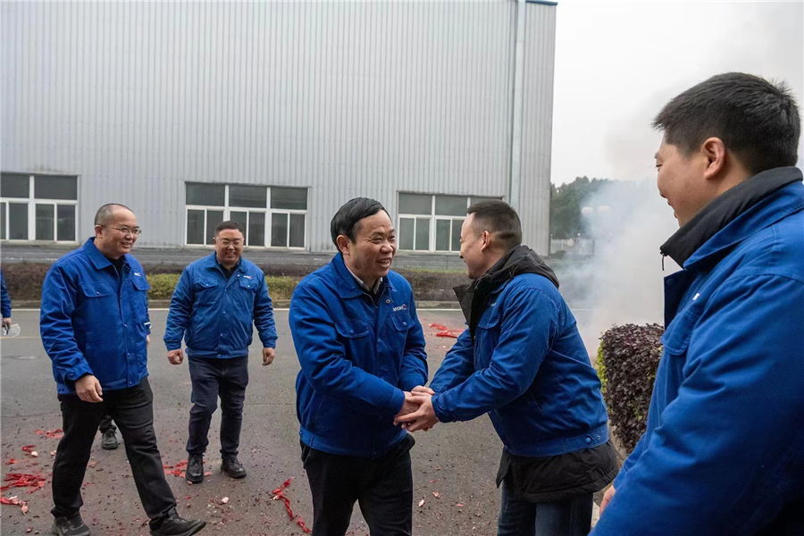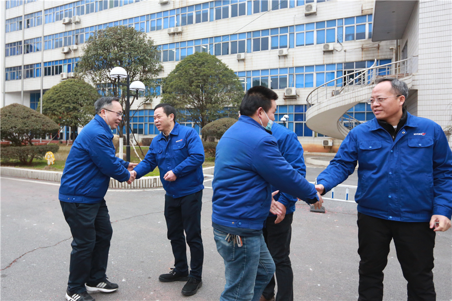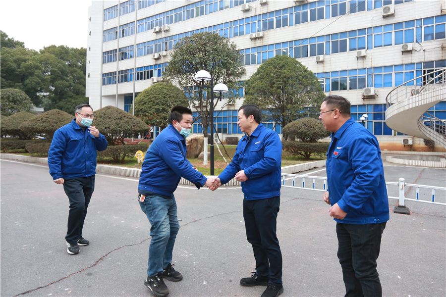 團(tuán)拜結(jié)束后,公司黨委書記、董事長(zhǎng)龍美彪,黨委副書記、總經(jīng)理譚新民率全體高層領(lǐng)導(dǎo)及中層正職領(lǐng)導(dǎo)干部走進(jìn)各生產(chǎn)車間慰問(wèn)一線加班員工,與大家互致新年問(wèn)候,并在新廠迎接中共衡陽(yáng)市委書記劉越高走訪慰問(wèn)。